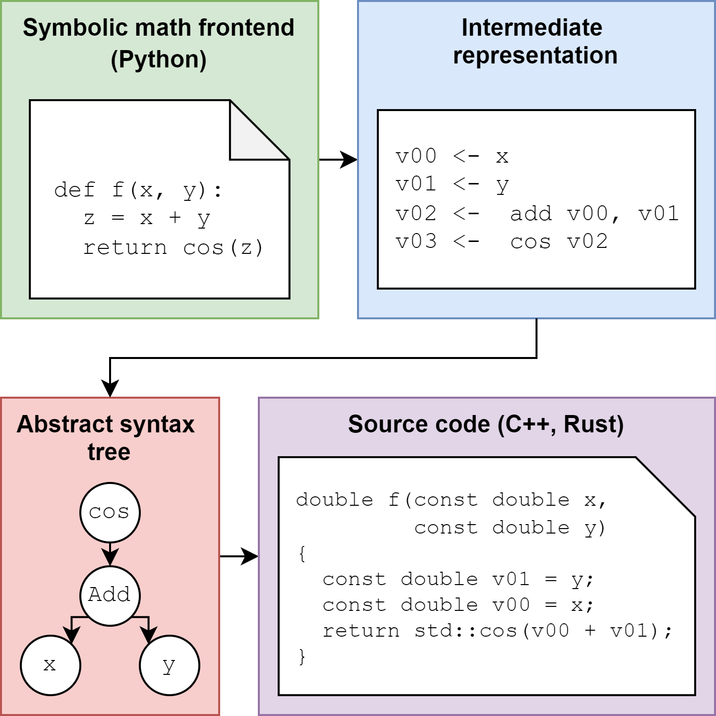 Conceptually, the framework behaves somewhat like a transpiler that converts math into code. At a high level, the steps involved are:
